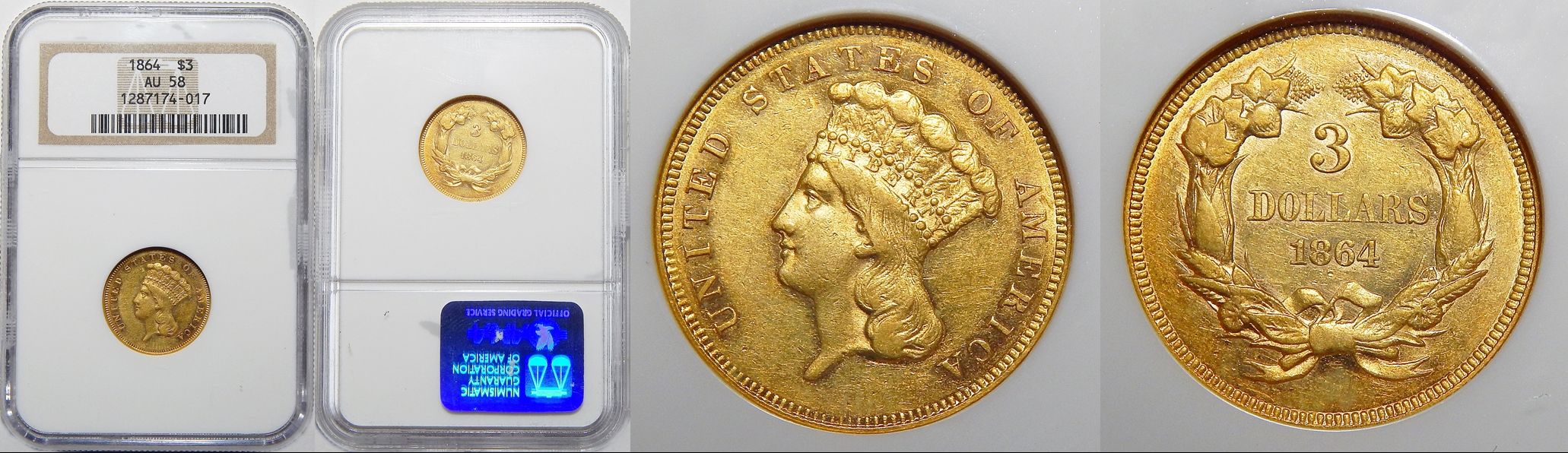 $3 Gold, 1854-1889