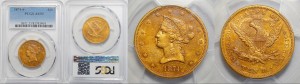 $20 Liberty Type Gold, 1850-1907